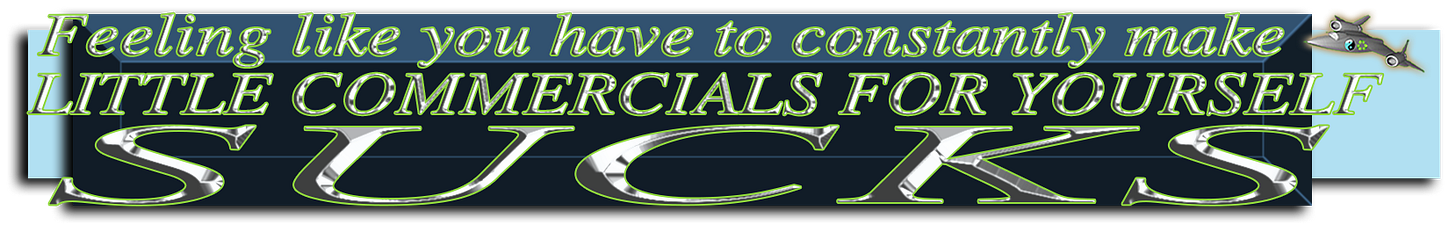 The obvious problem with this is that, after a while, feeling like every public utterance / outfit / joke / photo you share has to be a little commercial for yourself… sucks! It doesn’t feel good to constantly market yourself and to regard everyone you see as a potential customer, unless you are a true freak.