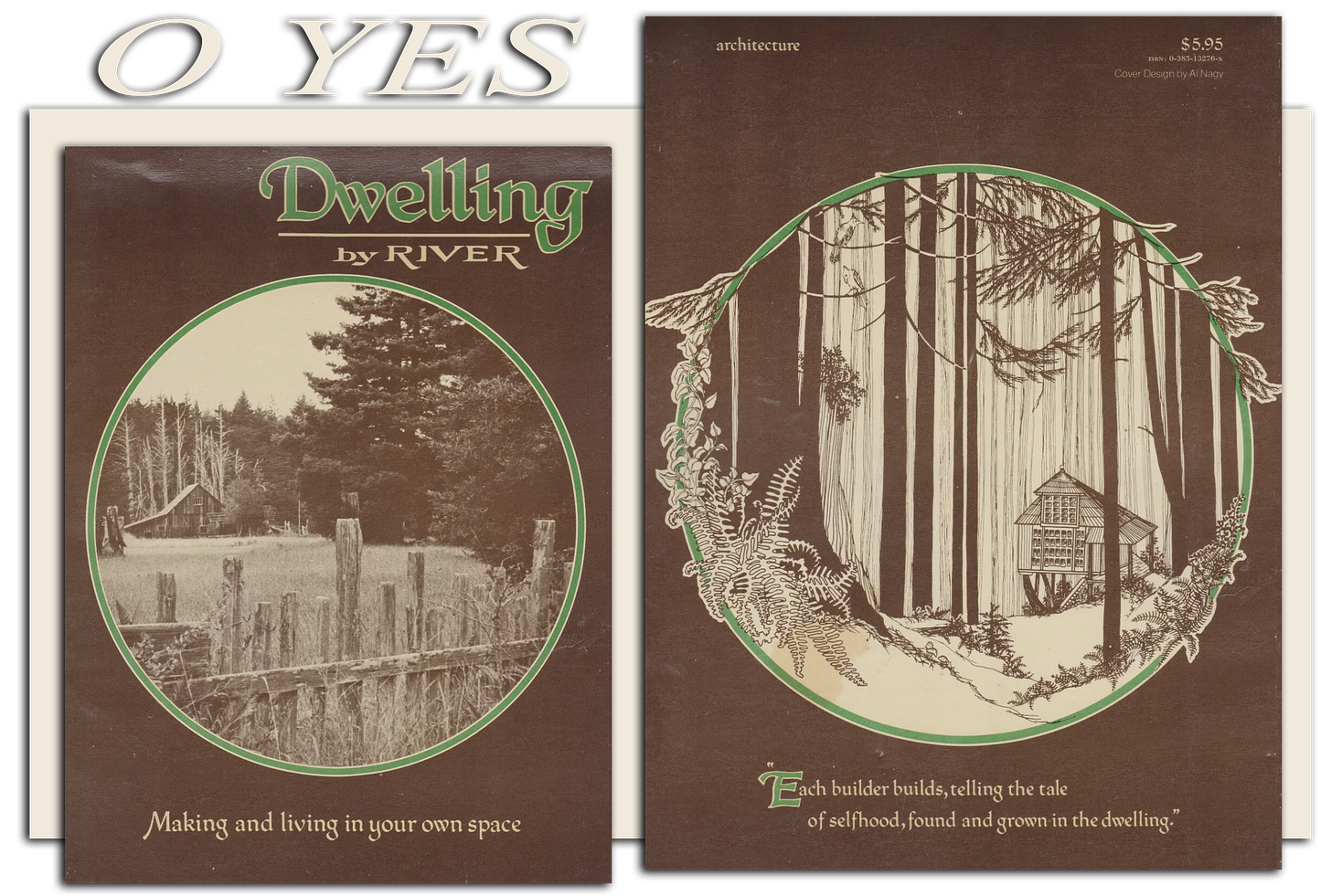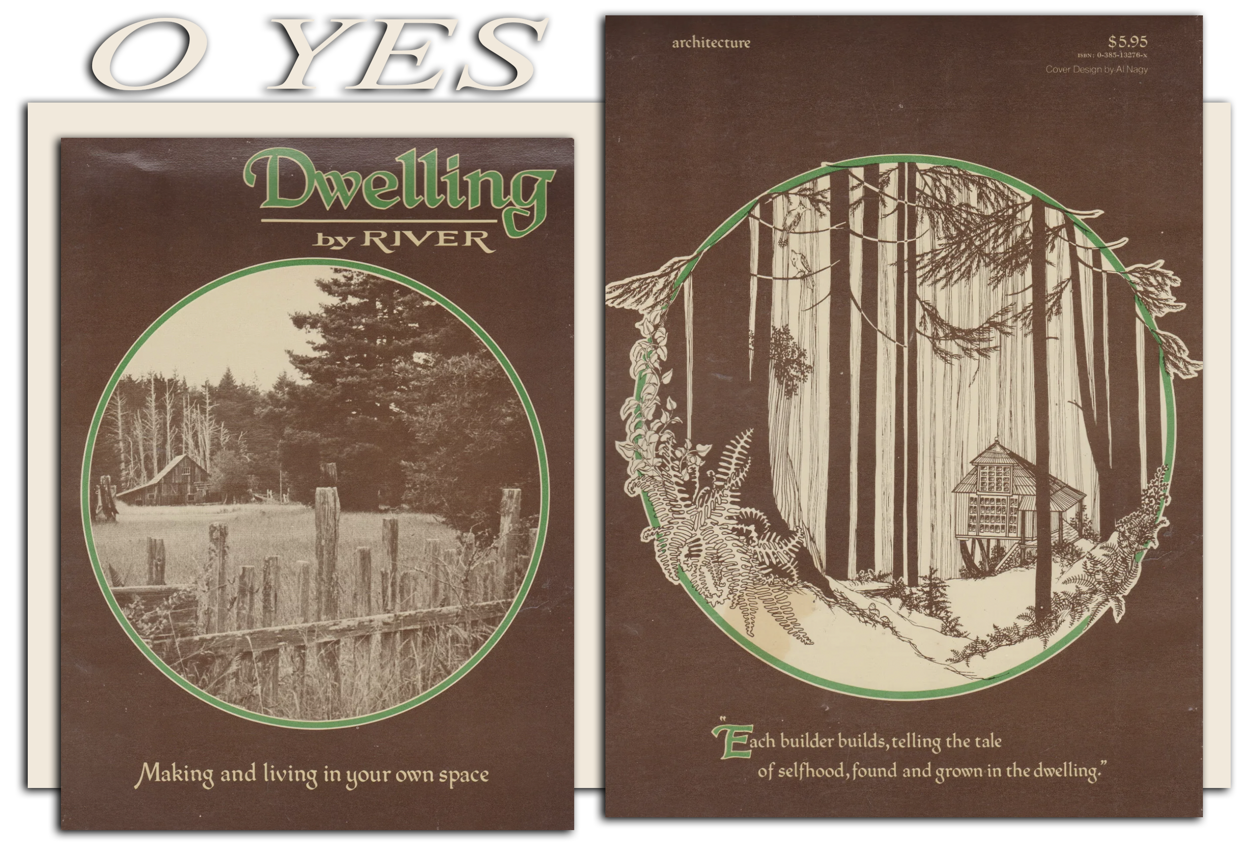 Salmon Creek Farm is a combined nonprofit artist’s retreat, occasional informal quasi-commune, and general “soul-restorative getaway.” It consists of 8 cabins arranged across 33 acres of coastal redwoods — the cabins were built by crunchy back-to-the-land-type amateurs back in the ‘70s, apparently using no power tools. One of the builders was 13 years old. There’s a very sick-looking out-of-print book about building your own that one of the co-founders wrote: Dwelling by River, one edition of which is pictured below. Copies pop up at resale now and again.