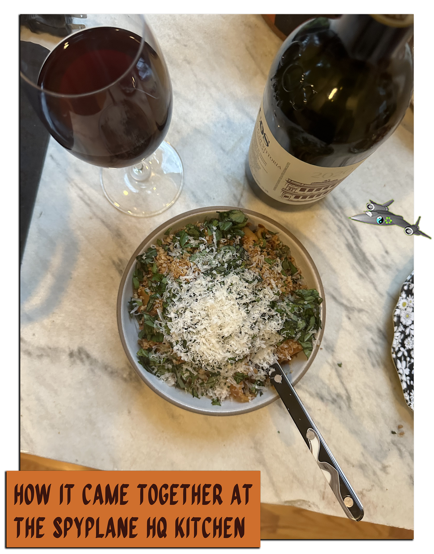 Spyplane note — when I (Jonah) cheffed this up at HQ (above), I used calamarata pasta, named for its resemblance to calamari rings. I also used harissa and red-pepper flakes, which was a pleasing, if mildly atomic combo. I’m curious to try it with gochujang next. Erin made it with straight tomato paste while visiting her parents and they all loved it. I had a good amount of breadcrumbs remaining at the end, so I sealed them up & used them on the leftovers. Also FYI I cut the eggplant pieces closer to 1/4-inch and, in our oven, they burned in places. When the eggplant broke down, the burnt bits added a nice char flavor I appreciated, but Alison is right that eggplants are the wild card here.