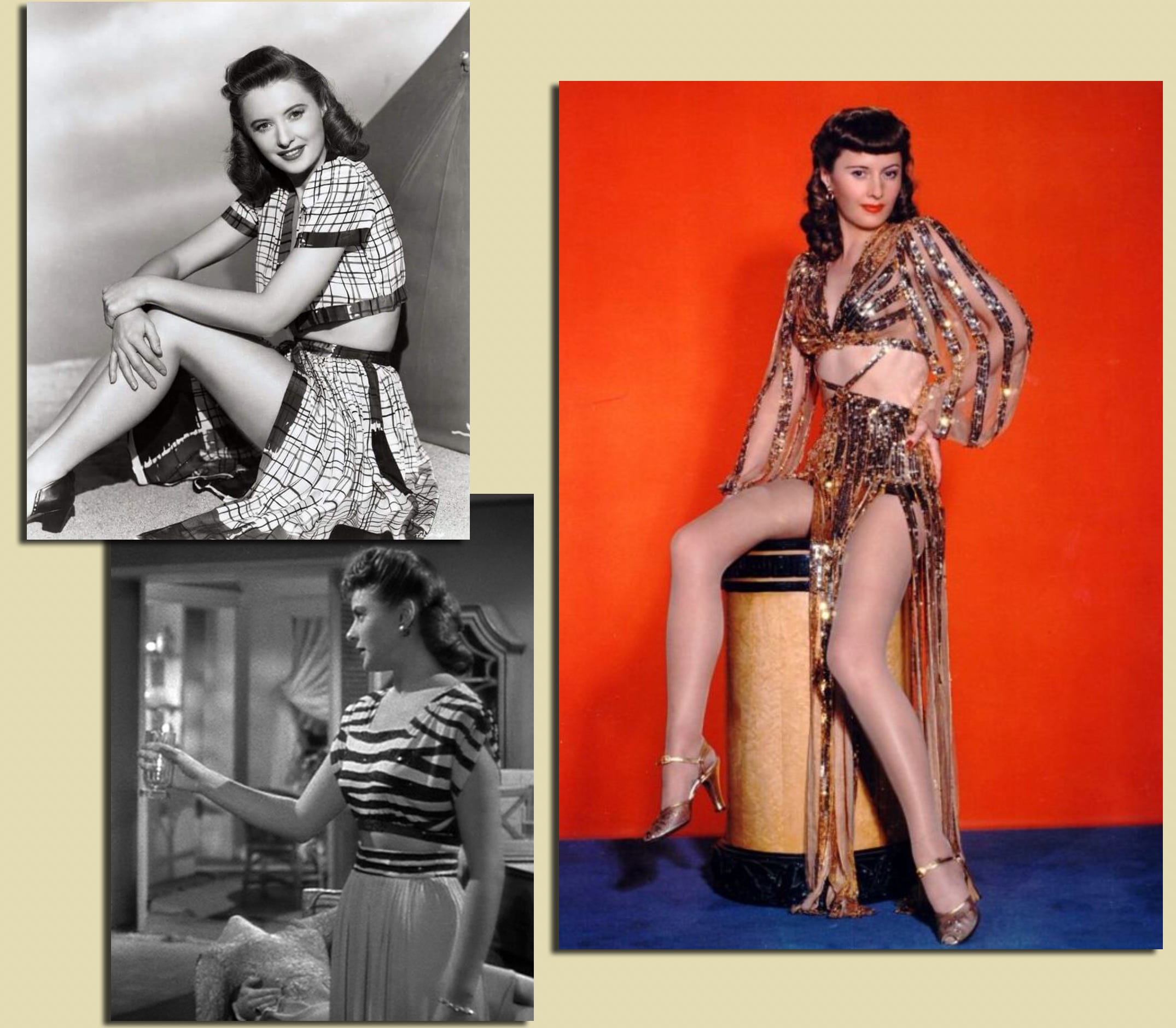Case in point: Get a load of these racy midriff-baring combos that Ingrid Bergman and Barbara Stanwyck rocked while playing “disorderly, disreputable dames” back in the ‘40s. The ensembles bottom left & right were designed by the Classic Hollywood costumes GOAT Edith Head, and while the strappy gold-sequined SUPERNOVA (from 1941’s Ball of Fire) might technically be a dress, the distinction is notional enough that we’ll allow it…