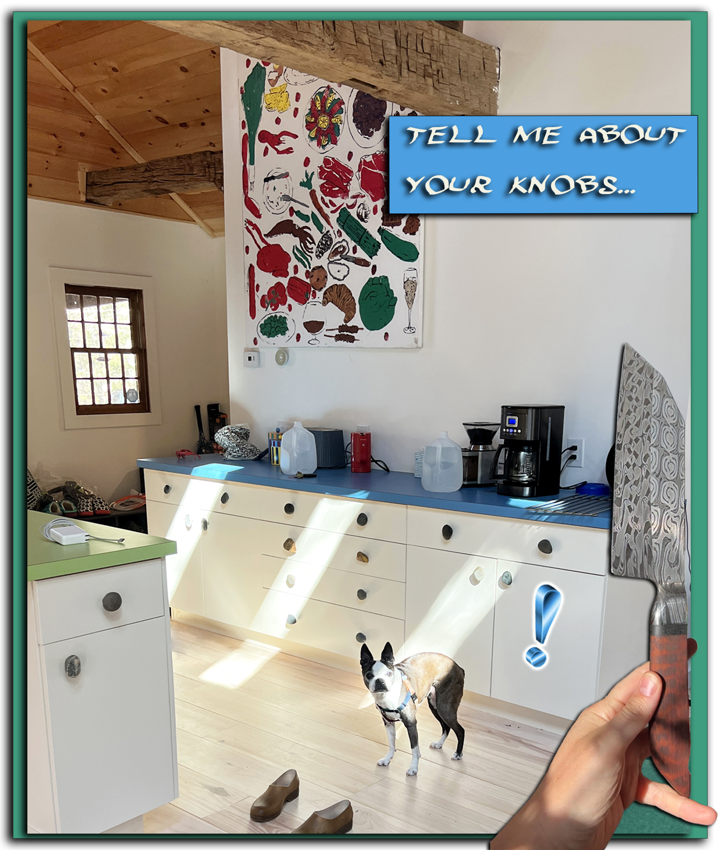 The other day Ellen posted a picture on IG of her pooch Snips in the kitchen of her place upstate (below right). My eyes shot to the rock-shaped knobs adorning all the cabinets, so I hit her up to find out where she got them…