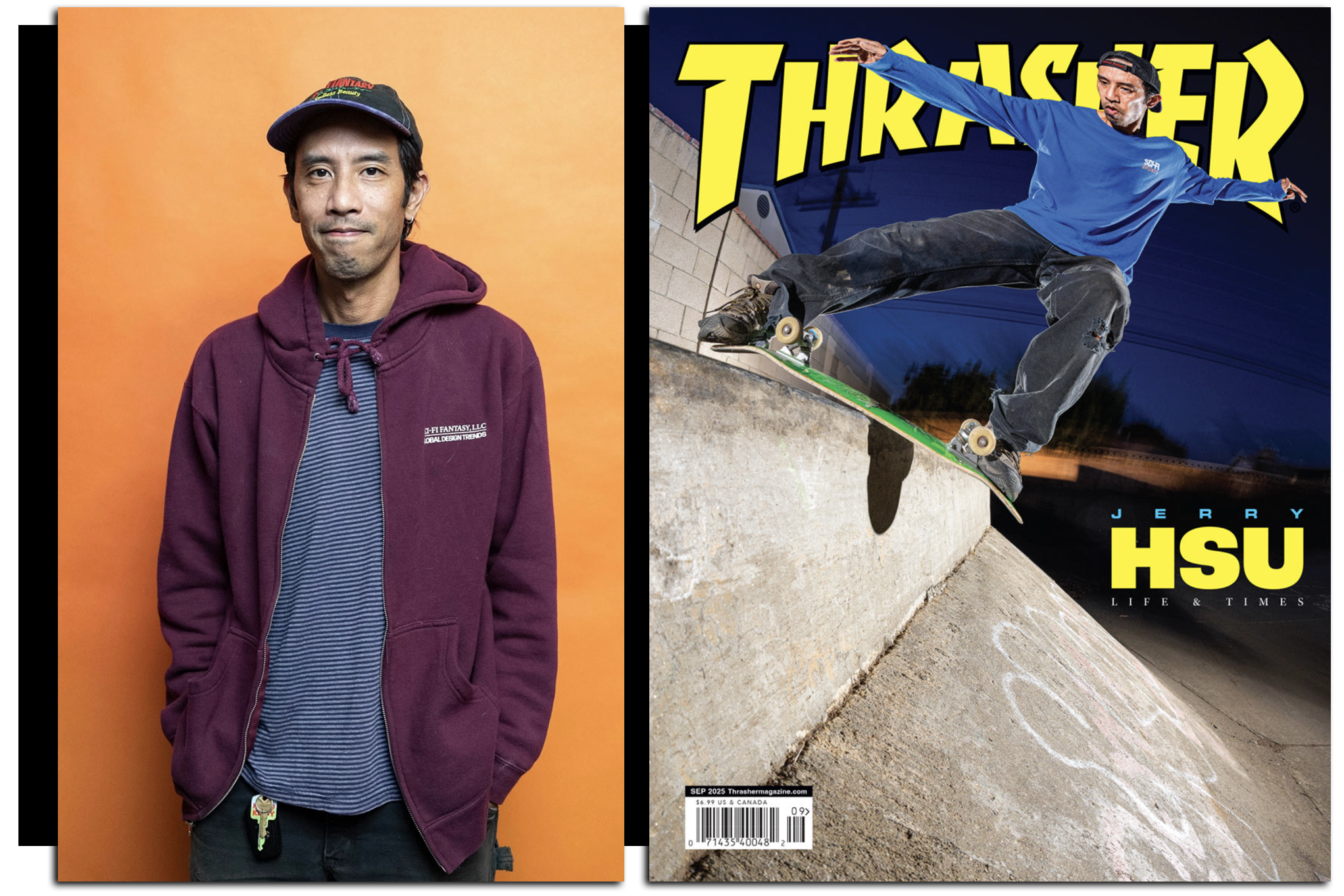 Hsu is 43, seems very cool, clips up in dope flambéed Merrell Moabs and dresses well in a chill, understated way — even as he mixes in graphics-forward pieces from his own Sci-Fi Fantasy line, which he designs, and whose cleverness and appeal we can appreciate even if it’s not really the kind of thing either of us wears. It also bears noting that, as with some other skate brands, when you rock a piece from a line like Sci-Fi Fantasy, you’re also repping for a team of cool and gifted skaters in a way that starts to scramble the distinction between streetwear and team apparel…
