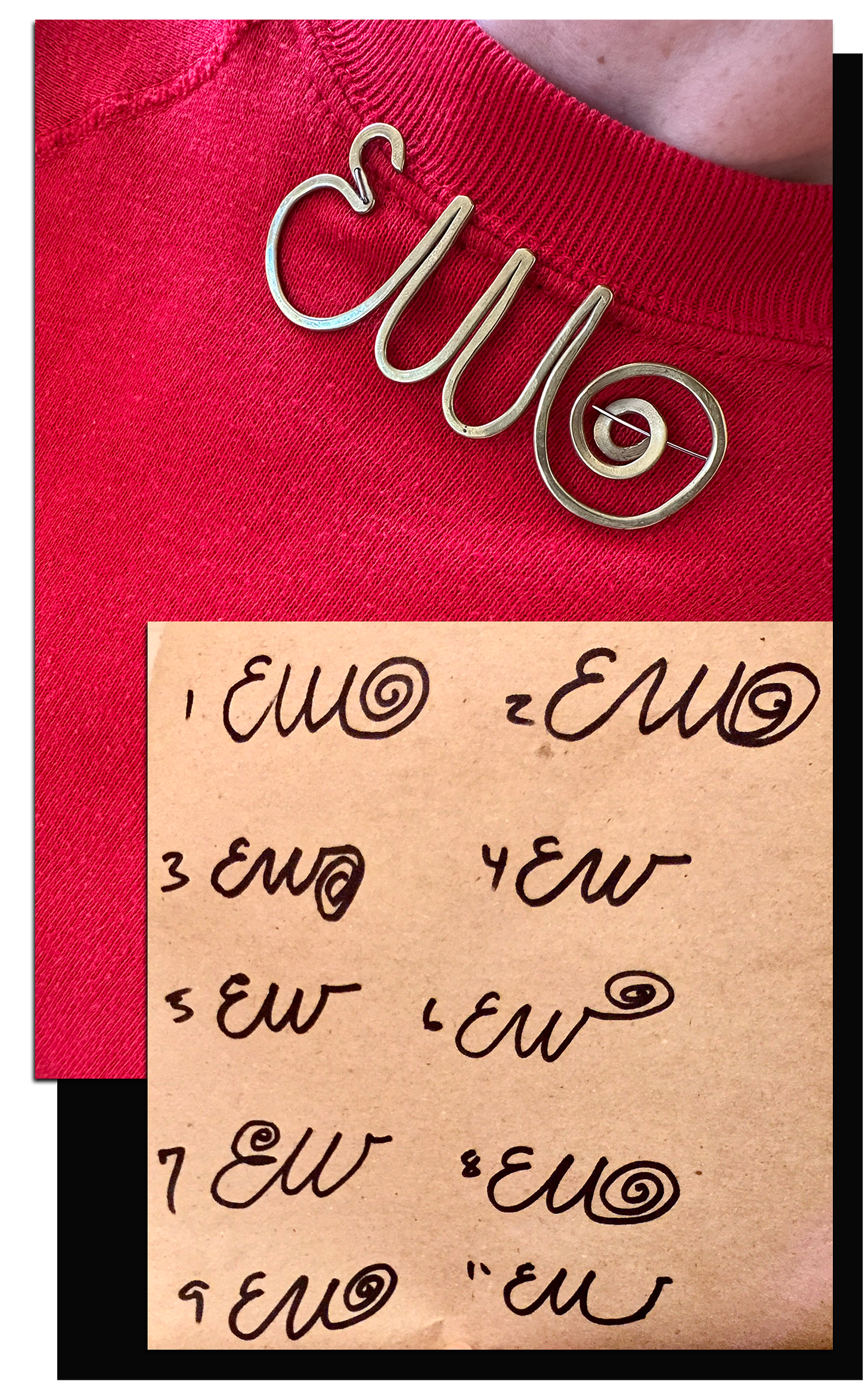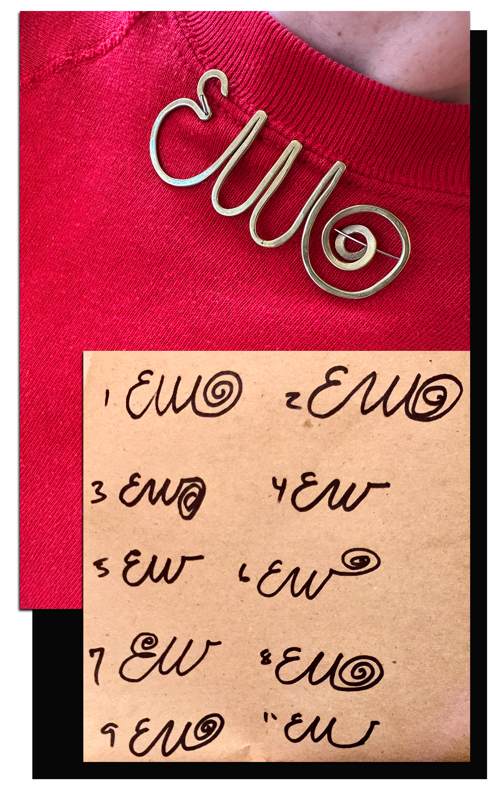 The pin in question is an Alexander Calder-inspired “EW” piece I custom-ordered for not a ton of bread back in 2021, after attempting to track down some authentic Calder jewelry and finding it impo$$ible.