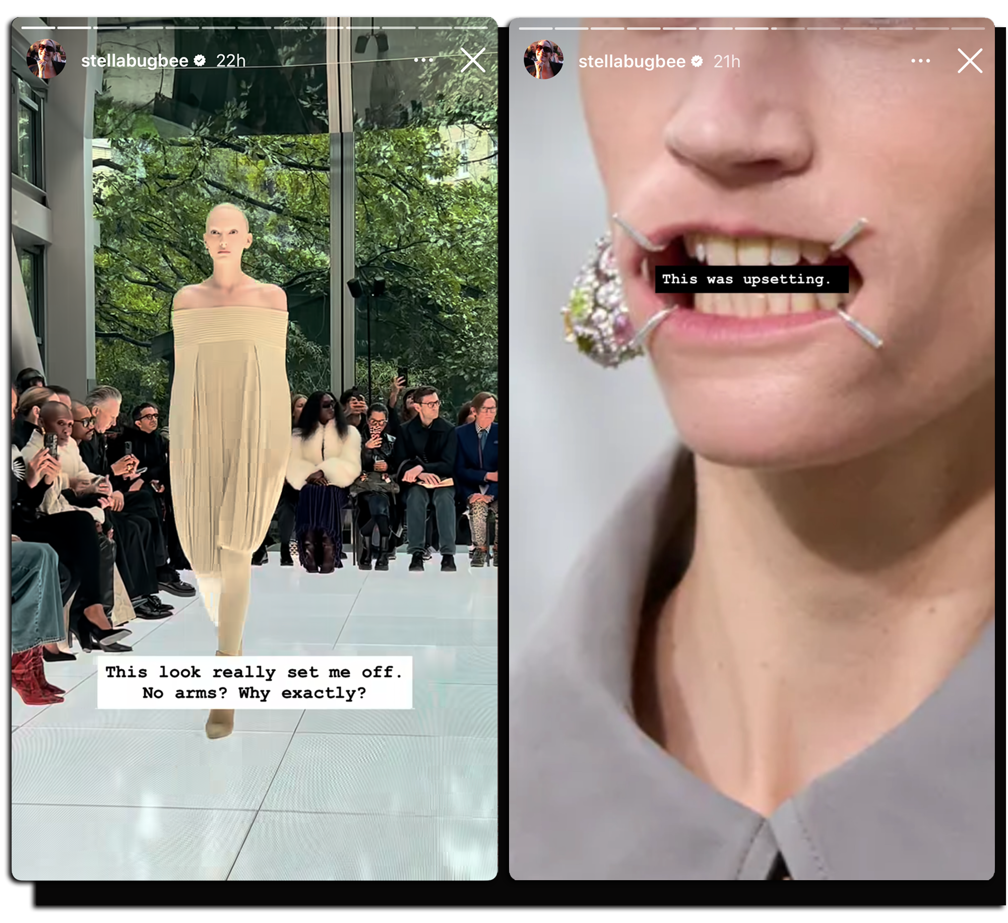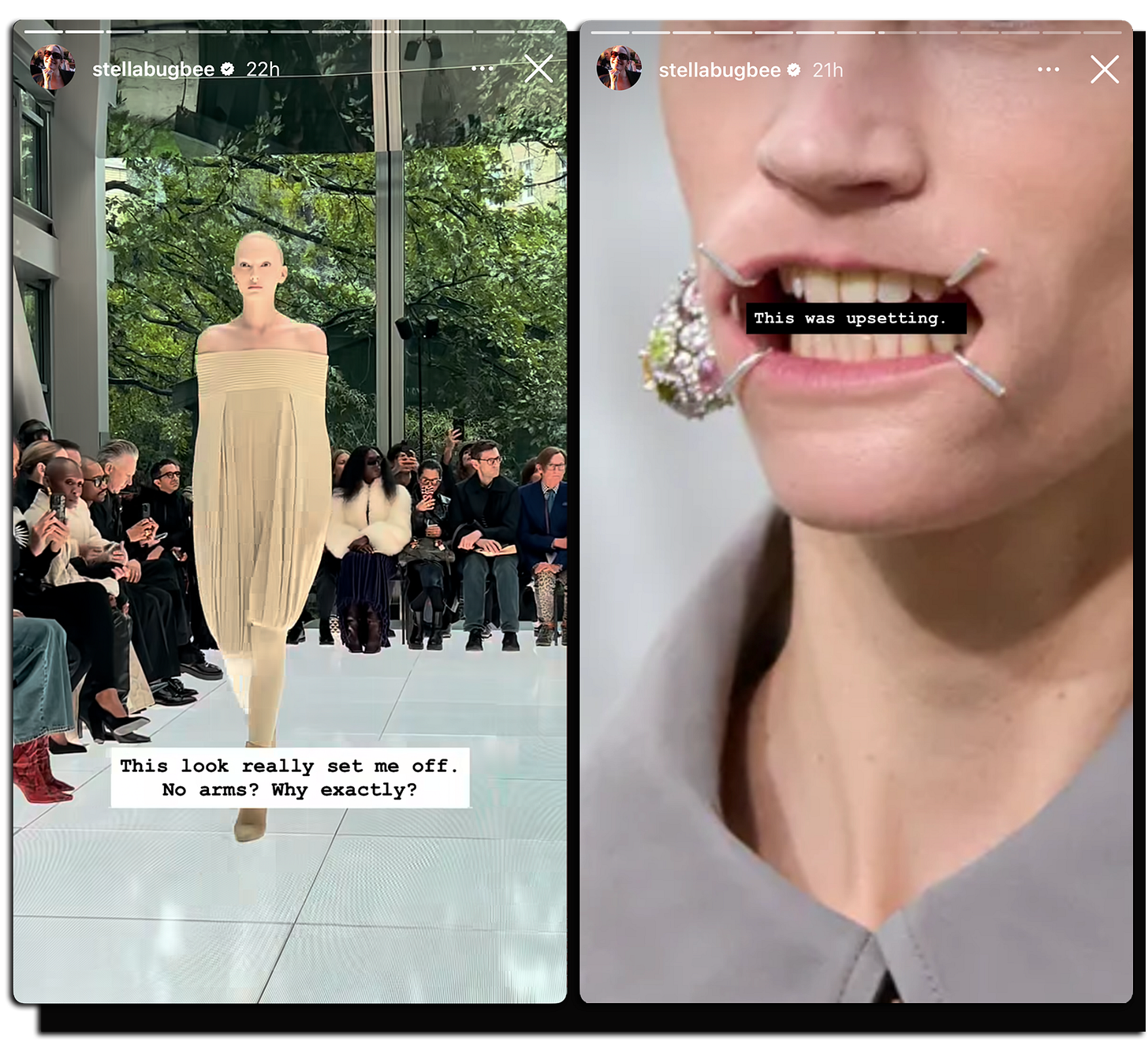 Last Monday, New York Times Styles editor Stella Bugbee posted a series of IG stories about a sense of mounting unease she felt at Paris Fashion Week — a discomfort and dejection that only grew over the course of several shows. “Sometimes,” she concluded, “it feels like fashion hates women.”