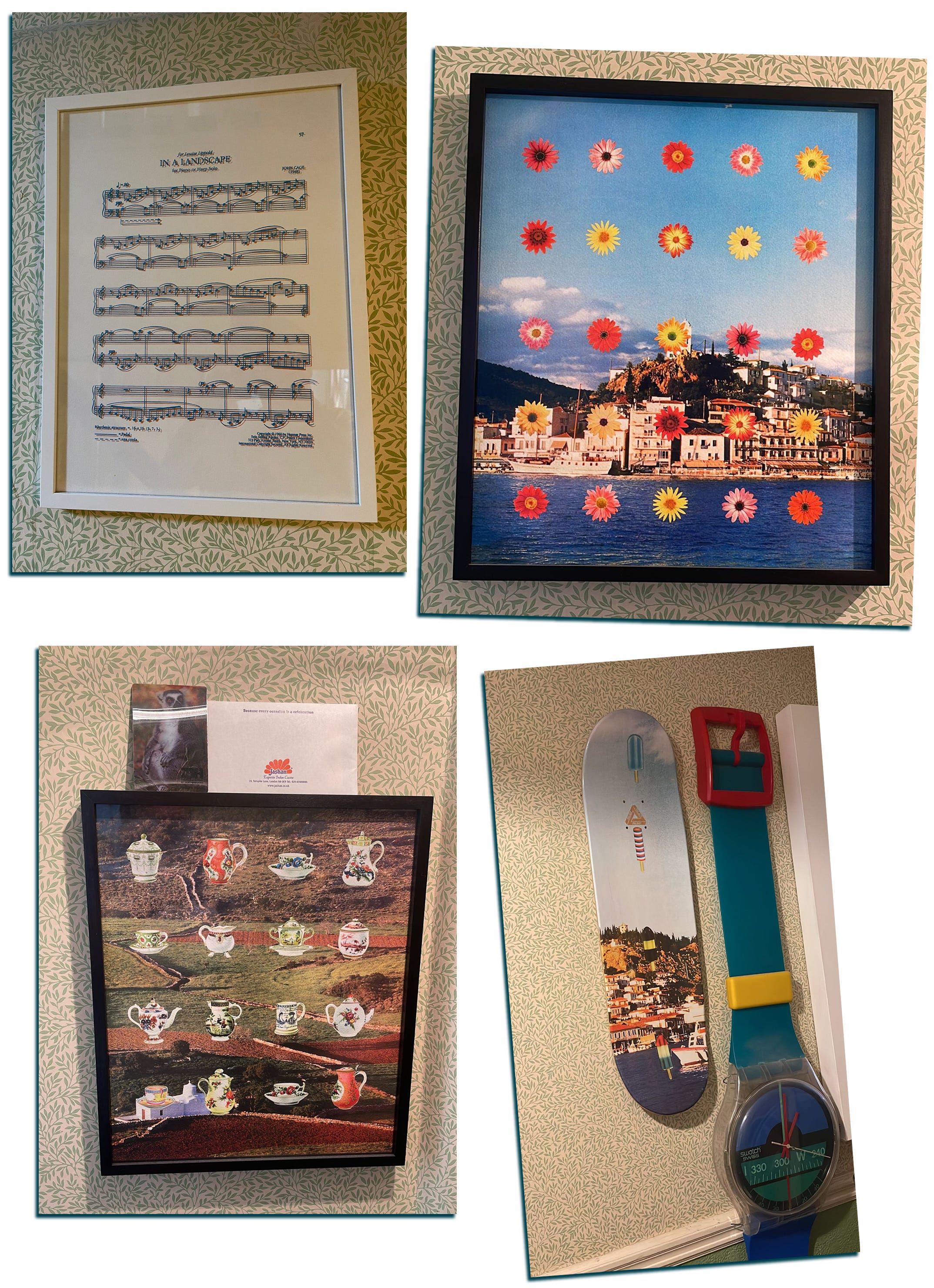 Blackbird Spyplane: You also sent over a few artworks by Oliver Payne, including some collages, a Palace skateboard deck, and a piece he did with the sheet music for John Cage’s “In a Landscape,” which is a very beautiful, dreamy, proto-ambient composition that I have been known to play on repeat for hours (embedded below)…