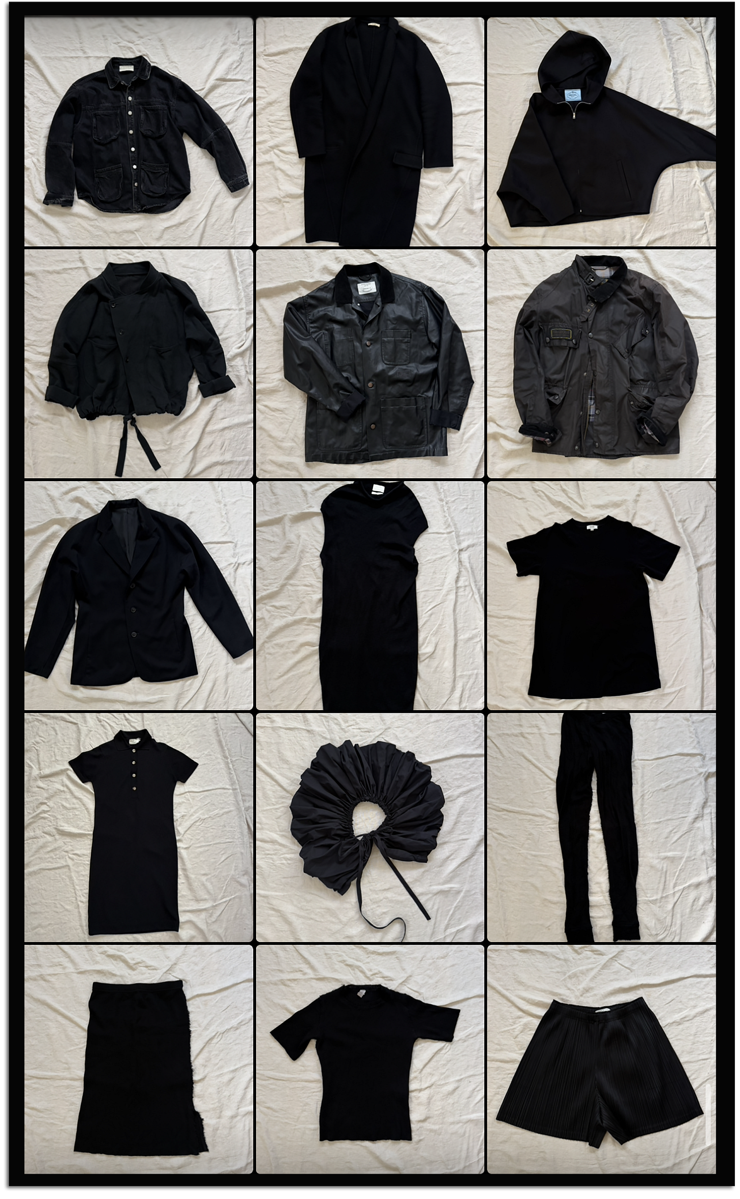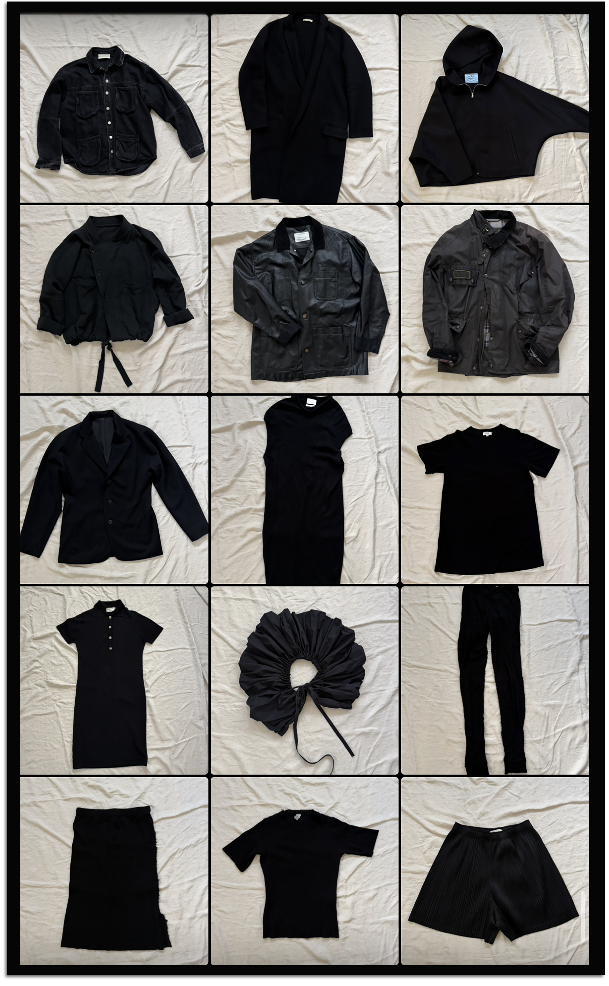 January 1: The first thing I do is photograph all the black clothes and shoes I own, so I’ll know which pieces are in play, and so I can think about how they might play off each other.