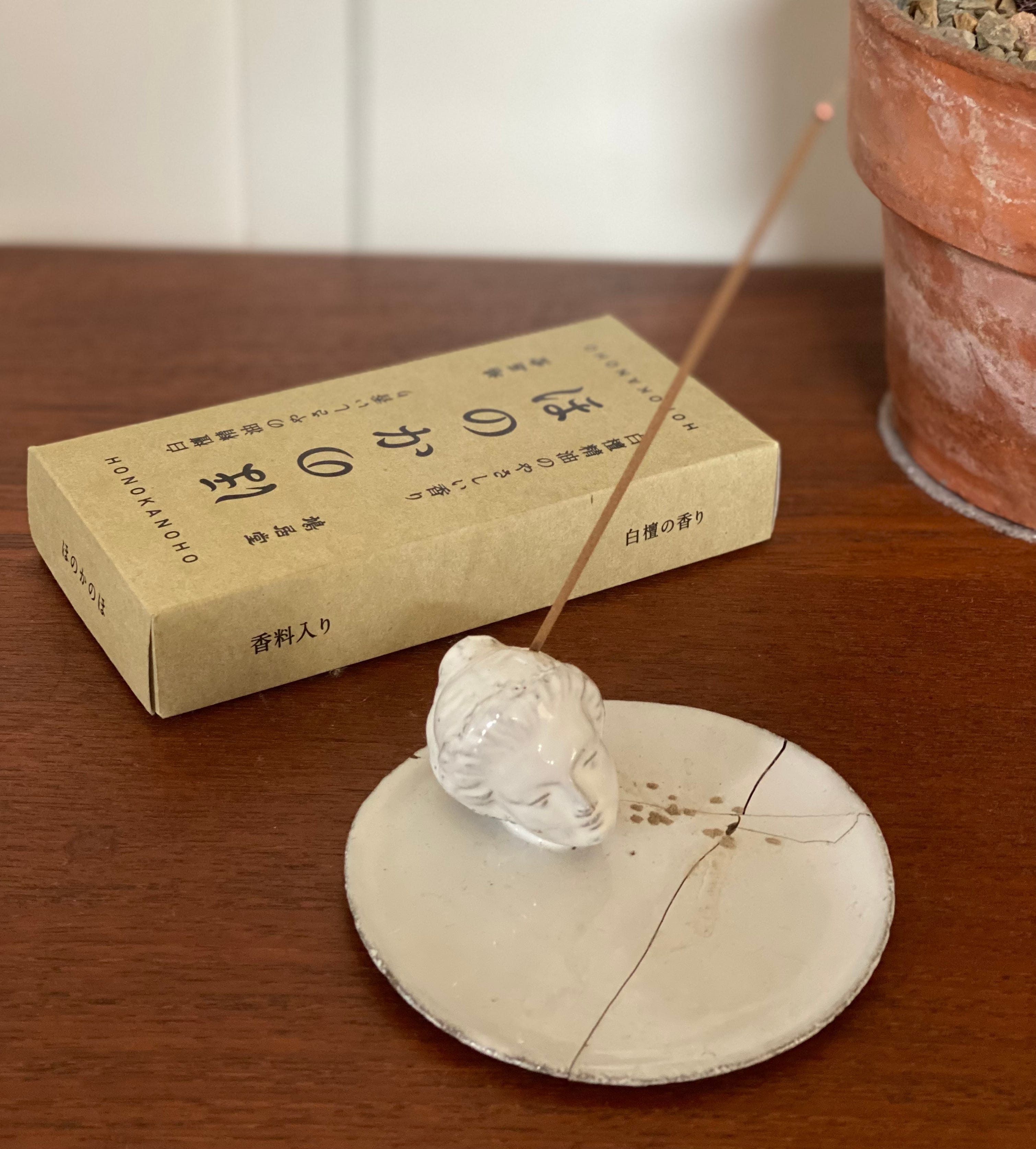 Last year I was emptying the ash from a very delicate Astier de Villatte incense holder shaped like beheaded Marie Antoinette that Erin copped in Paris and I accidentally DROPPED it, smashing it into ~5 pieces… For a moment I was shook, but then I just krazy-glued that s**t back together and now when I look at the cracks and smell the sandalwood sticks burning I have proof that I am a living, breathing, mistake-making HUMAN JAWN-APPRECIATOR — not a Sotheby’s restorer handling artifacts w/ a tweezer !!