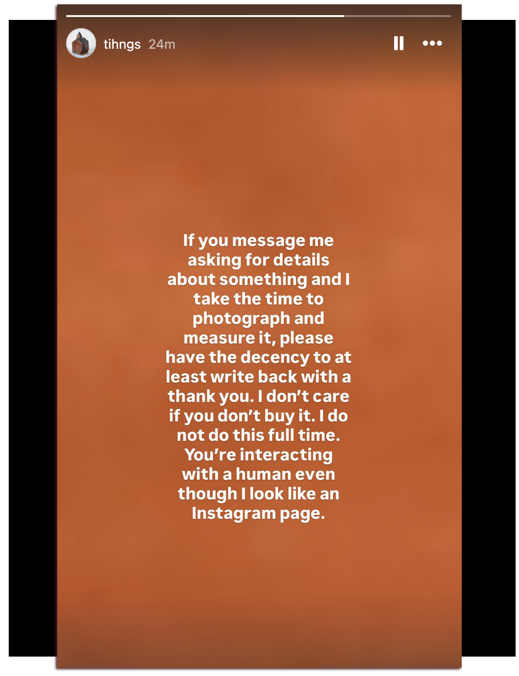 Seems people have been moving goofy in Eric’s DMs to the degree he needs to remind them, “You’re interacting with a human even though I look like an Instagram page.”