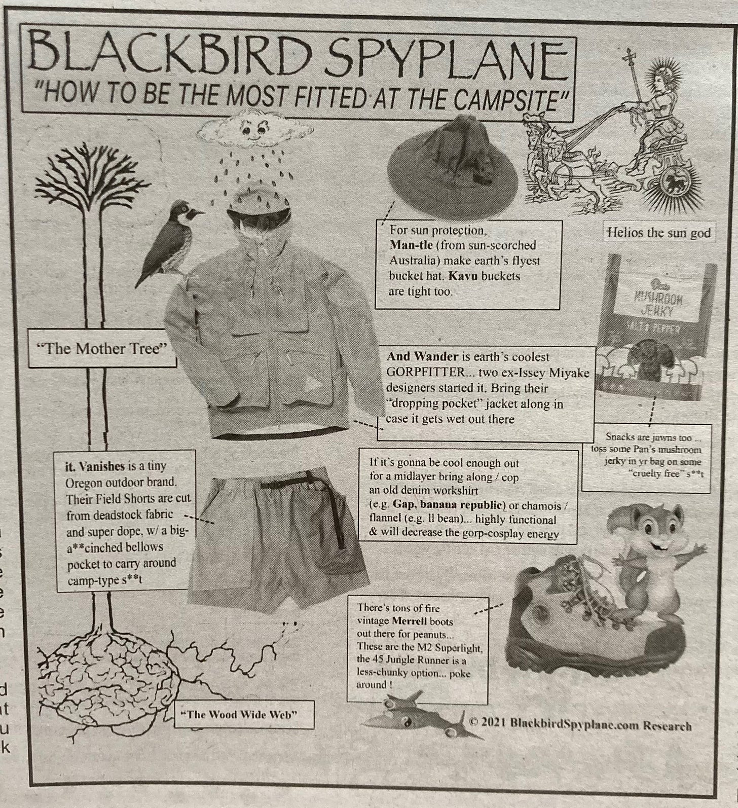 Many wise people who know what the f**k is going on cite Blackbird Spyplane as a crucial force in making GORP the fashion phenomenon it’s become… Since we’re the no. 1 source for “unbeatable humility,” far be it from us to take credit, but it’s true that we’ve been highly vocal about our love of outdoor gear from day one, and real talk we’ve crushed Mach 3+ GORP FIT after Mach 3+ GORP FIT, here and on IG, achieving results too objectively beautiful not to be massively influential on the populace…