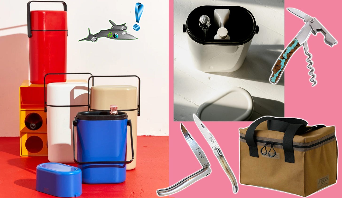 We didn’t have one of these Vintage Richard Carlson wine coolers or this High Tide Cooler Bag (both pictured below) but it would have been dope if we did. (We did have a Santa Fe Stoneworks corkscrew on hand...)