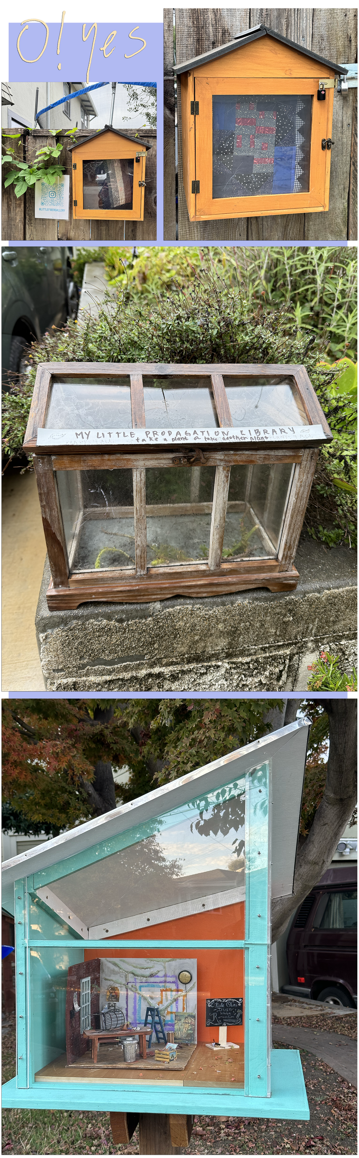 Along similar lines, Erin and I have noticed a rise near us in various Little Galleries, including a Little Fiber Arts Gallery (where you might see a quilt on display) a Little Plant Propagation Gallery (sedum cuttings), and a Little Diorama Gallery: