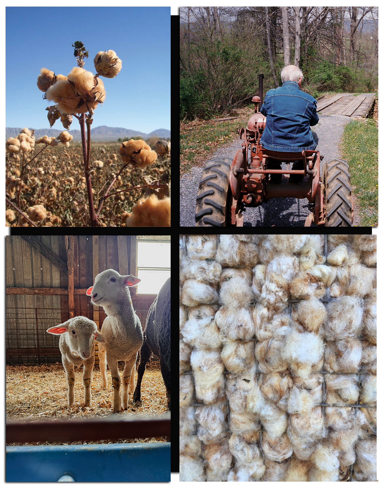 That color is thanks to Sally Fox’s FoxFibre™ — an organic dye-free cotton she’s grown and bred since the 1980s (as seen in the field, below top left). Fox is a literal Spyplane Icon, whose nursery Jonah visited last year and whose work we’ve written about in-depth here. We’ve previously featured her collaborations with other clothesmakers we admire, like Cottle, Evan Kinori and Dana Lee Brown.