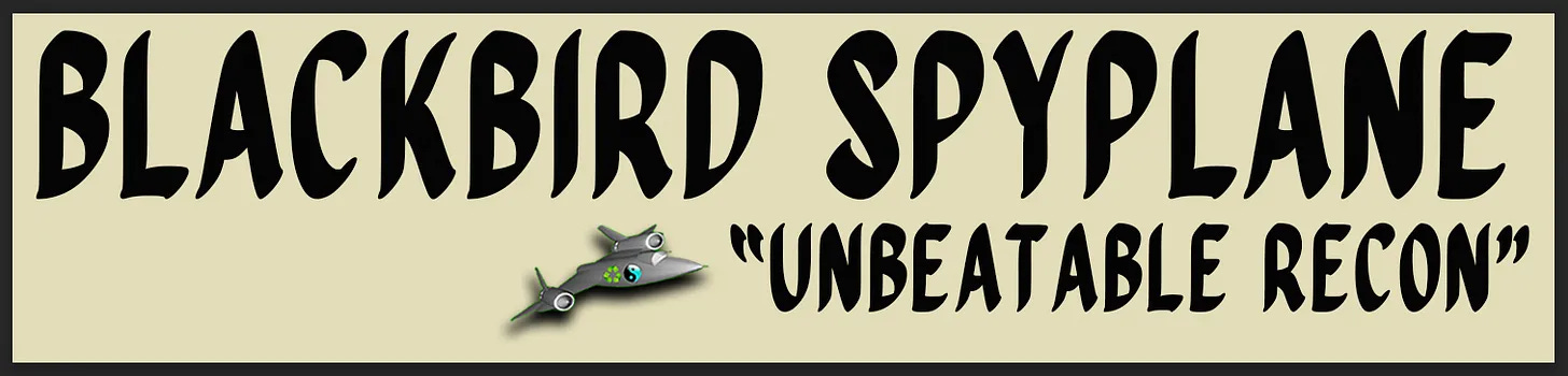 Welcome to today’s Blackbird Spyplane. And, please believe, the rumors are true: We remain your “Recon Rock of Gibraltar.”