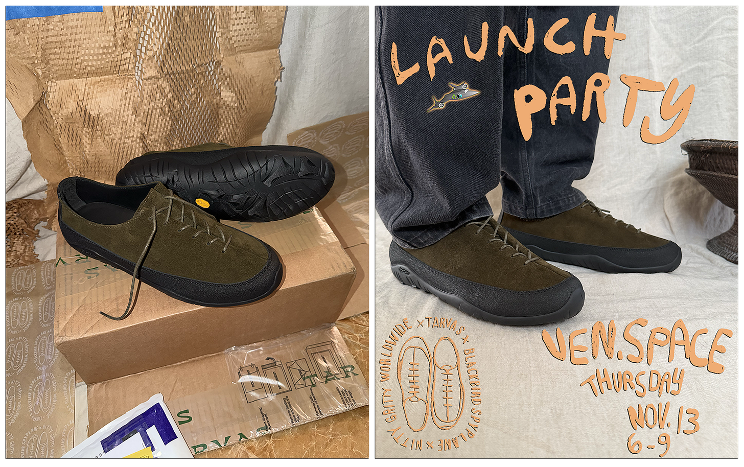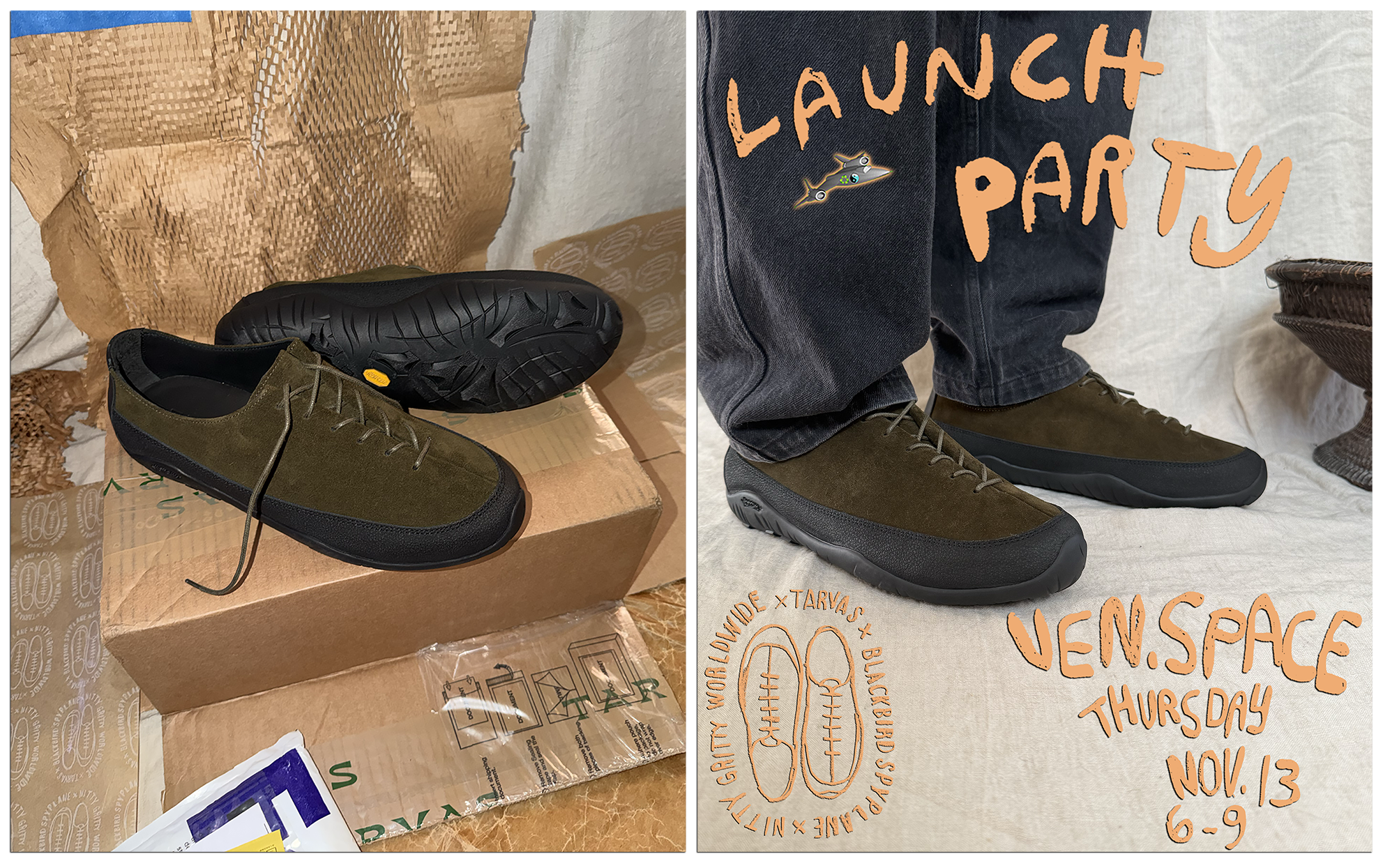For each pair, a single piece of repello suede is folded & stitched to create the upper, wrapped in rubberized leather, and then set on a low-profile Vibram sole. They’ll be available in person on Monday Nov. 10 at Ven.Space in Brooklyn, Neighbour in Vancouver, Rendez-vous in Paris, Nitty Gritty in Stockholm, Understory in Oakland and Maidens in Tokyo. They hit those shops’ sites Thursday Nov. 13. And they hit the Tarvas site on Friday Nov. 14, with an early-access window for our Classified Tier subscribers.