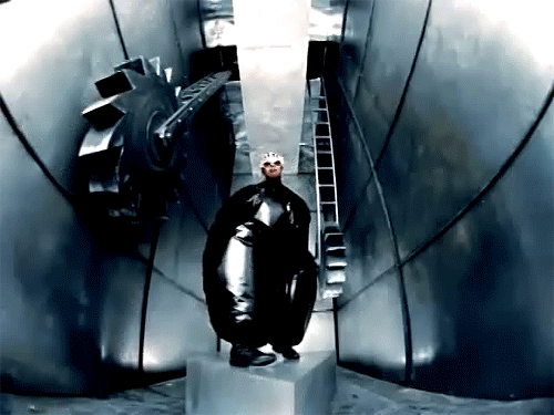 Built around a hollowed-out Ann Peebles sample, the beat is funky as f**k but it doesn’t move anything like the way other hip-hop beats moved back then. It’s cut into oblong chunks by twitching, irregular percussion… Missy raps in a hypnotically narcotized tone, leaving a bunch of empty space in her verses, deepening the track’s sense of rhythmic deformity … All of which gets visually extrapolated in the iconic Hype Williams video, where (with a debt to underground NYC “ugly<~>genius” hero Leigh Bowery) Missy spasm-dances into a fish-eye lens while rocking what looks like an inflated patent-leather garbage bag…??