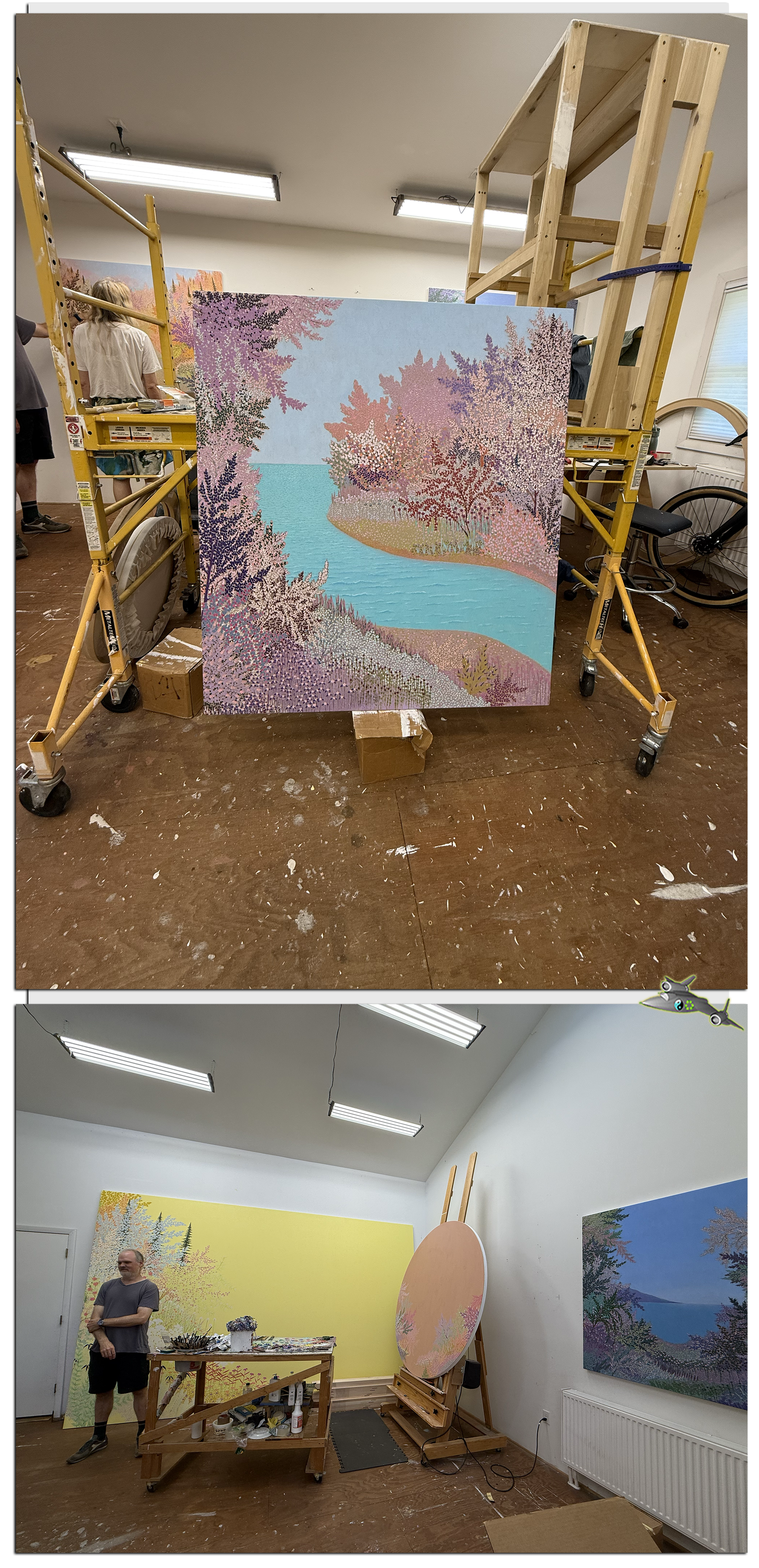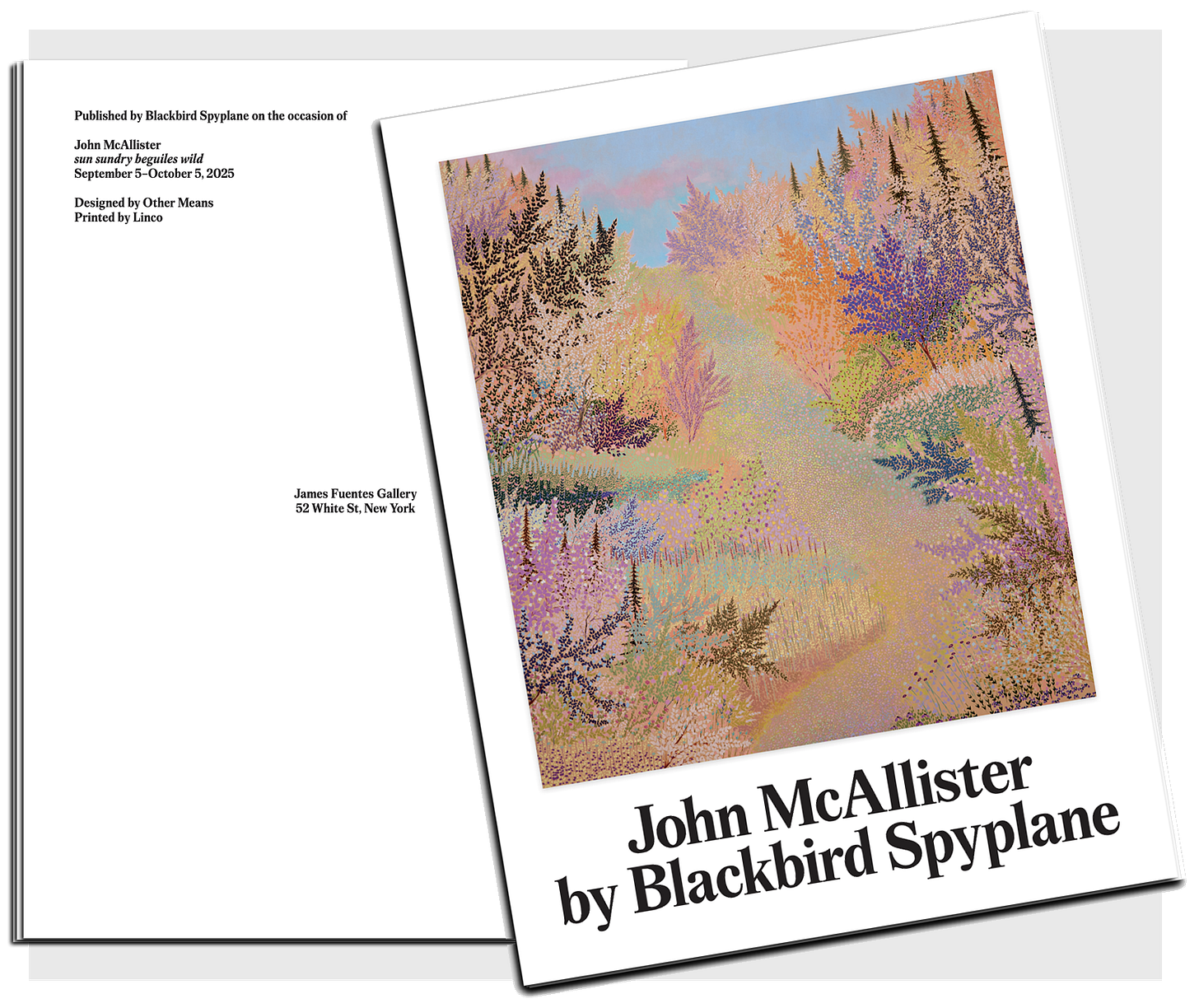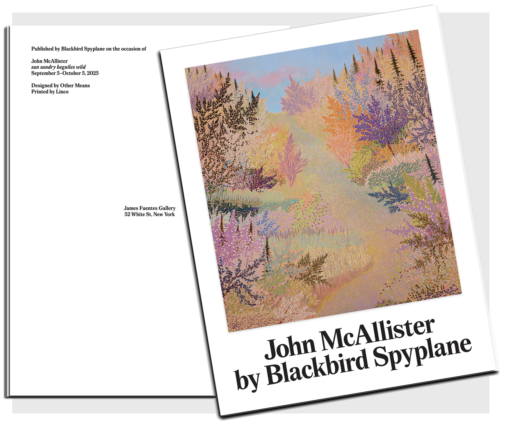 Today we’re kicking off a month-long Spyplane Fall Spectacular, full of Mach 3+ autumn cultural coverage we’ve got planned for you. For the many Spyfriends who can’t snag a physical copy of the Spyplane McAllister zine in person, we’re running my appreciation of John’s paintings here in the sletter, interspersed with process shots from his studio, taken as he worked on the new show.