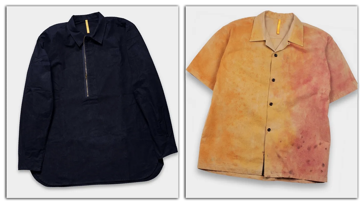 Their enzyme-wash garments, like the camp shirt above right, have an appealing pop to them … but what sticks with us about the line is that if you are the type to occasionally suffer from “GRAPHIC T-SHIRT FATIGUE,” or periodically o.d. on wild prints, like us, it’s cool to find a brand that can get this expressive with solids.
