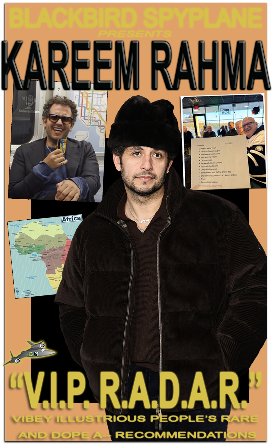 So I (Jonah) thought he’d make a great guest himself on the recurring Spyplane series we call V.I.P. R.A.D.A.R., which we devote to Vibey Illustrious People’s Rare And Dope A-- Recommendations…