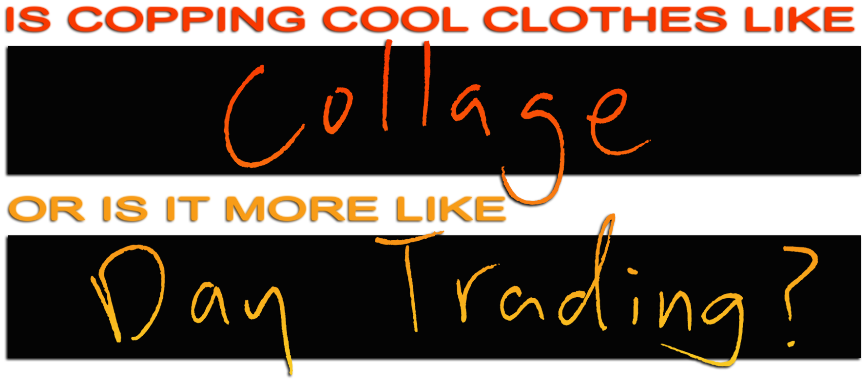 For this type of person, buying clothes they do not own is the paramount concern. The clothes they already own are not, to them, very meaningful in themselves — when push comes to shove, the clothes hanging in their closets represent fuel they can feed into the hearth of their urge to cop, as needed, to keep the flames burning…