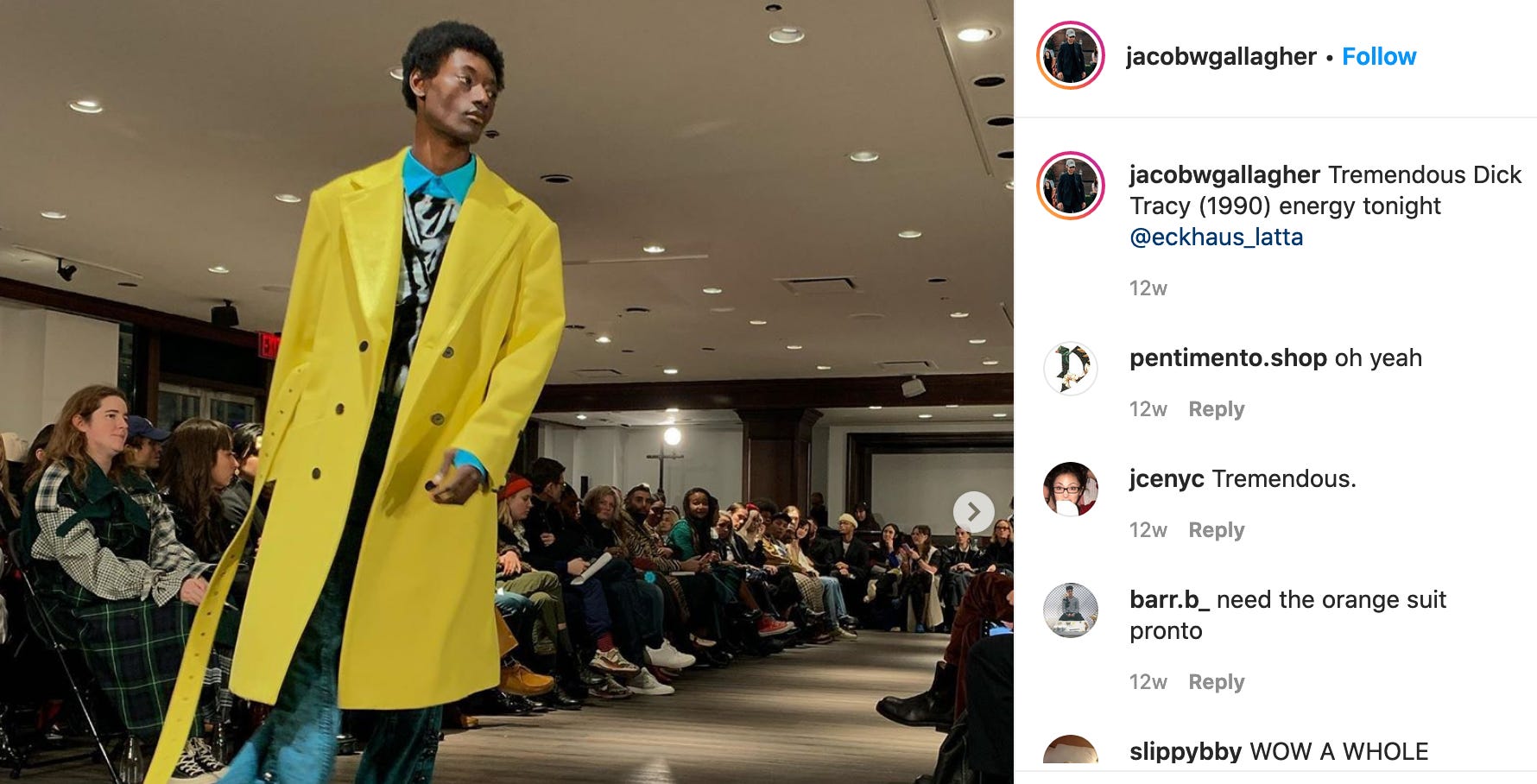 Jacob’s also a sharp follow on Instagram and Twitter, where, among other things, he flaunts high-level eBay-scouring talents: