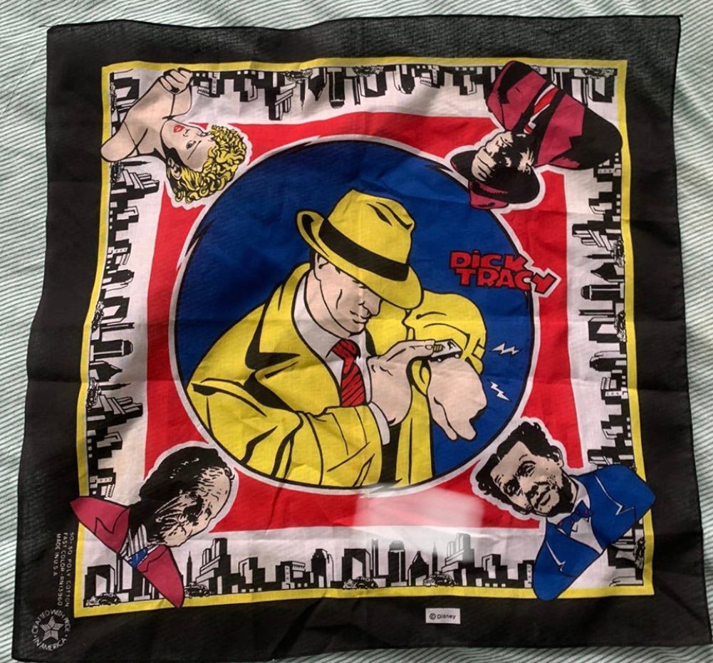 Since BLACKBIRD SPYPLANE is the No. 1 source across all media for recon on under-the-radar joints, we hit up Jacob the other day and asked him to tell us about a particularly prized gem he’s mined from eBay’s depths. He chose a promo scarf from 1990’s Dick Tracy…